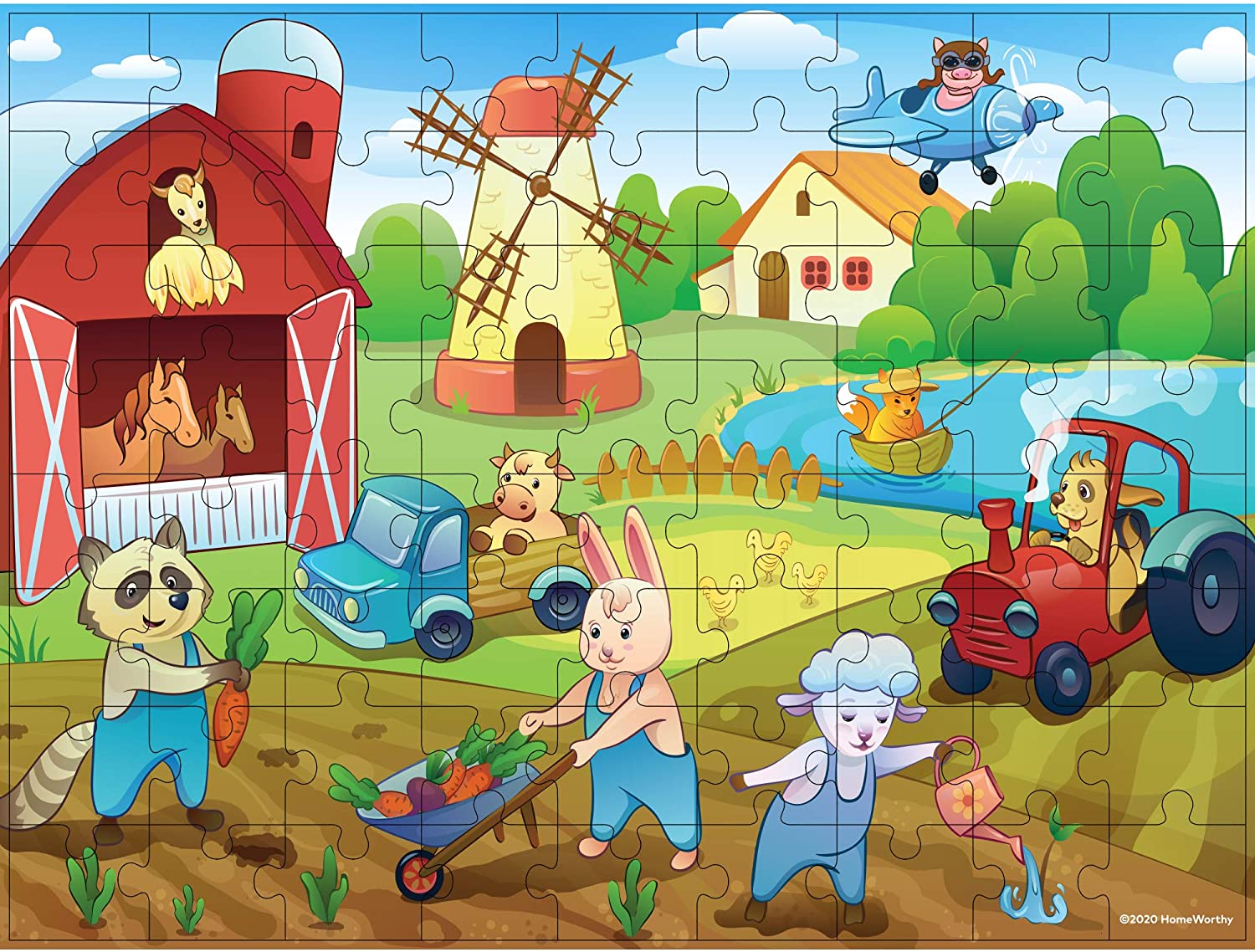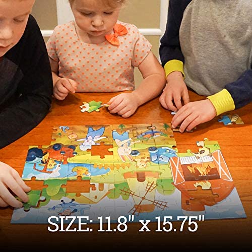 SIZE: 11.8 x 15.75 – This Puzzle for children features a beautiful farm illustration, where the animals are the ones farming! Kids will especially delight in discovering all of the animals and images in the puzzle! It is perfectly sized for Elementary and preschool learning! EXTRA STRONG PUZZLE PIECES: As parents, were always frustrated by broken and damaged puzzle pieces, so this time weve designed stronger puzzle pieces that are thicker and made to last. Theyre a good match for mischievous toddlers or destructive kids (you know who they are)! ENGAGING GIFTS FOR KIDS: This Animal Farm Puzzle is packaged in a strong box that is more durable than most, meaning that your gift will last for years to come. If your child has outgrown simple 24 piece puzzles for kids, then theyre likely ready for this 72 piece puzzle! Youre in the right place if youre looking for challenging puzzles for children, puzzles for 5 year olds, or even kids puzzles ages 6-8 on up! PUZZLES CREATE FAMILY TIME: These animal childrens puzzles make great family activities for both a boy or a girl! The HomeWorthy household has 6 children, and theyve each given their stamp of approval! Weve discovered that its difficult to find kids puzzles ages 4-8 that they can do collectively, and so weve focused on creating engaging designs that fill this niche! JIGSAW PUZZLES BUILD BRAINS: Teach children to love puzzles at a young age, and youll help their growth and development! In fact, solving jigsaw puzzles has been proven to increase production of dopamine, which in turns helps to regulate your optimism and mood (win win)! And because dopamine affects your ability to concentrate and learn, as well as affects your motivation, its clear that puzzles make excellent learning learning toys for children!