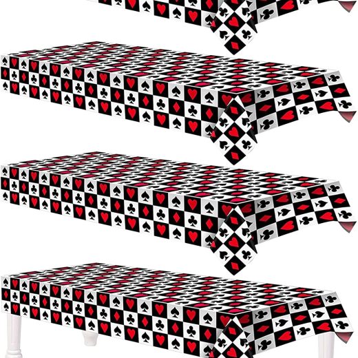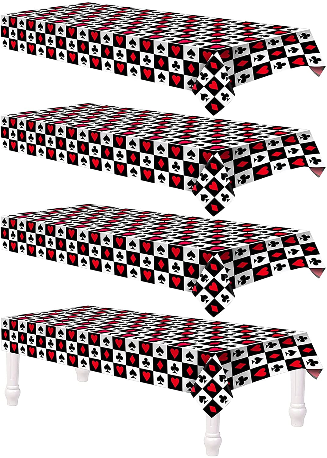 Chris.W 4Pcs Las Vegas Casino Poker Birthday Party Tablecover Poker Themed Party Tablecolth Disposable Party Decoration Supplies Poker Game Theme P…