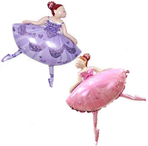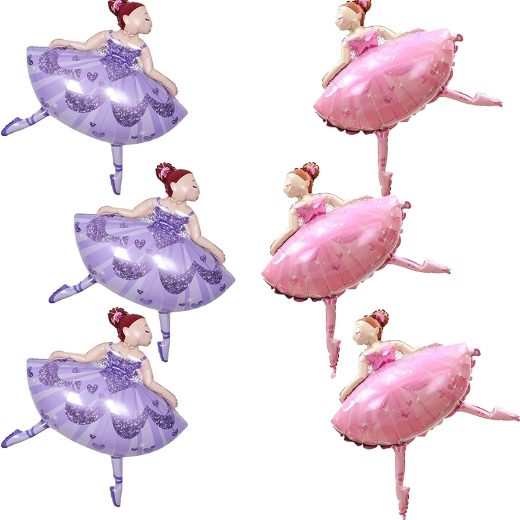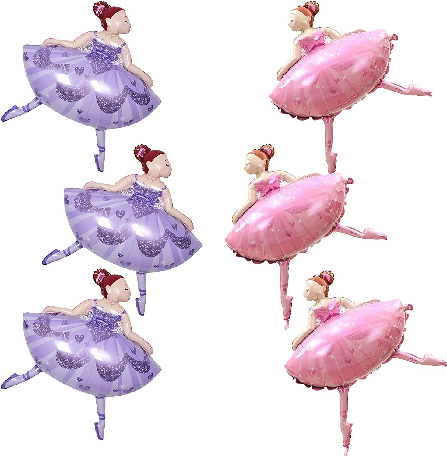 Chris.W 6Pcs Ballet Dancing Girl Foil Mylar Balloons, Large Ballet Dancer Girl Balloons for Birthday Party Decoration Wedding Baby Shower Ballet Dancing Themed Party, Pink & Purple
