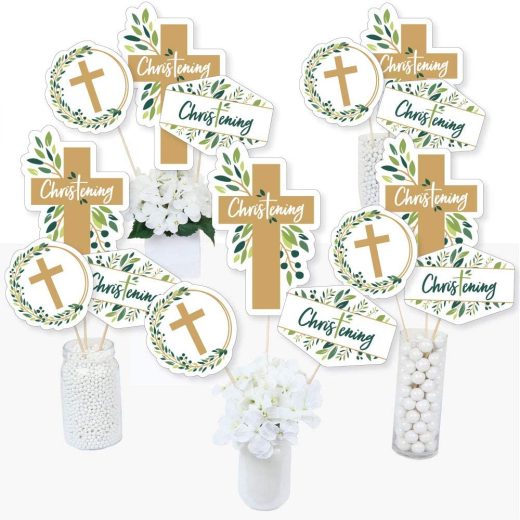 Christening Elegant Cross – Religious Party Centerpiece Sticks – Table Toppers – Set of 15