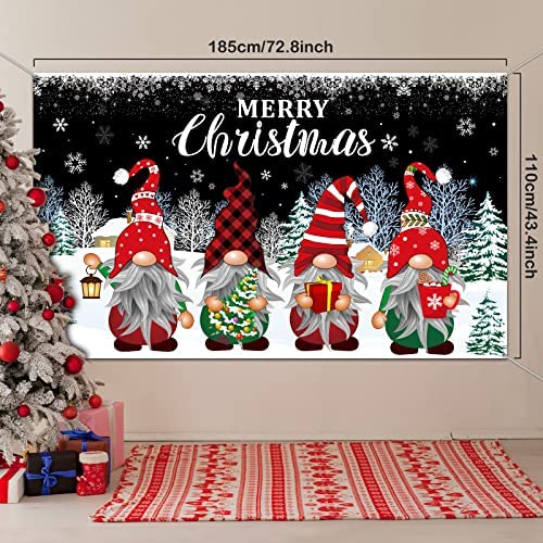 Christmas Backdrop Banner, Gnome Banners Xmas Party Background Decoration for Photography, Holiday Photo Booth Props Wall Hanging Decor for Winter Supply 72.8 x 43.3 Inches (Classic Style)