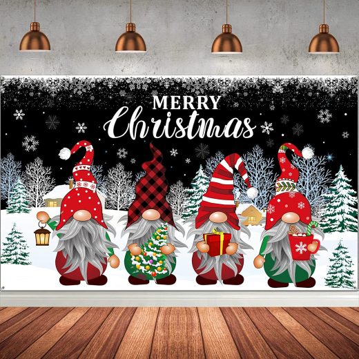 Christmas Backdrop Banner, Gnome Banners Xmas Party Background Decoration for Photography, Holiday Photo Booth Props Wall Hanging Decor for Winter …