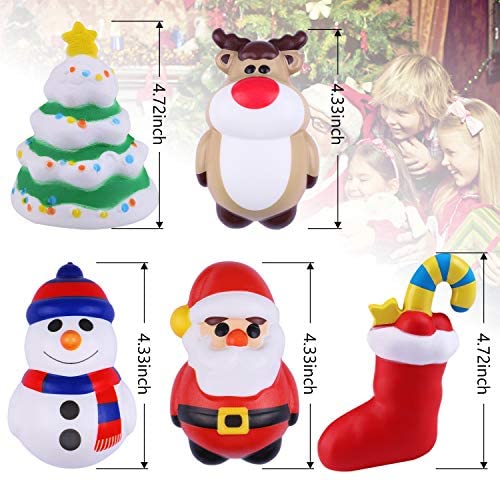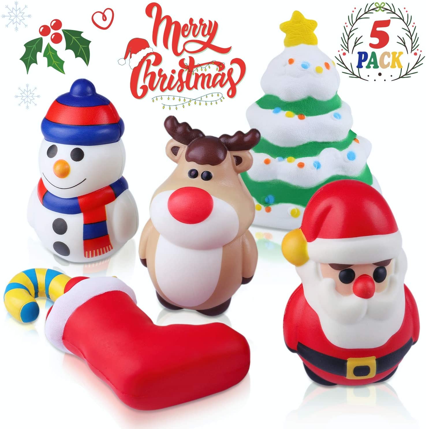 Great Squishy Toys Pack- Include 5 different cute pattern of Snowmen, Christmas Tree, Santa Claus, Reindeer and Christmas Stocking. Make amazing ho…