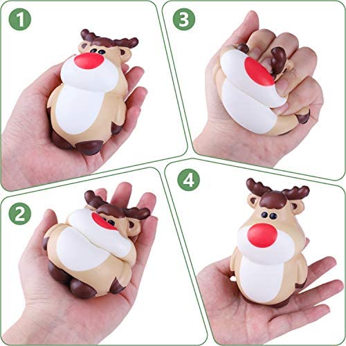 Great Squishy Toys Pack- Include 5 different cute pattern of Snowmen, Christmas Tree, Santa Claus, Reindeer and Christmas Stocking. Make amazing holiday gifts! Premium Quality –The Christmas squishy toys are made of non toxic polyurethane foam, which is safety for children or adult to use. Nothing is more important than your safety for us. Stress Relief Toys–Nothing beats squeezing a jumbo squishy toy to release anxiety.These types of soft toys and stress toy helps kids with autism or ADHD focus and manage daily stress. It has also been proven to work well with people of all ages who struggle with focus, anger, or anxiety management. Ideal Gift–Premium quality, rare limited edition, super slow rising Santa & Friends Squishies make this Christmas be more different. The perfect addition to any Squishy lovers collection, or start a new collection off right! Warm Notice–This Soft Squishy Toys smells like cream or fruit that you may feel a little hungry with it. But it`s not food, Do Not Eat!!! Do not try to tear to make it more durable !!!(Especially the star on the top of the Christmas tree).