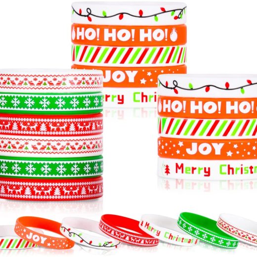 PACKAGE INCLUDING: 35 Pack of silicone Christmas patterns wristband. Totally 7 designs for choice. 5 Pack for each design including snowflakes, elks, lighting, snowman and Christmas trees which important elements of Christmas. MUTIPLE COLORS: the wristbands are printed with different colors including white, red, green and orange. Putting on these wristbands can make you to be more attractive and exquisite at the party. Dimensions: these wristbands have the same size, 3.94 inches in diameter, 0.5 inches in width. Its elastic to stretch to fit kids to adults’ hands. PREMIUM QUALITY: please feel free to use the wristbands which made of 100% flexible silicone. It’s a water-proof, eco-friendly and non-toxic product. It’s also durable enough to last for a long time. WIDELY USE IN VARIOUS OCCASIONS: If you hold Christmas party or birthday party, you can give these wristbands as a gift to your friend at the party. This is also a good decorative element for the party.
