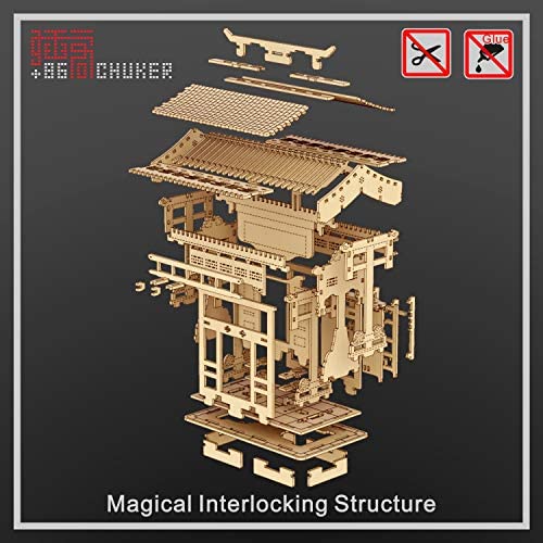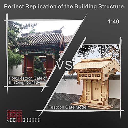 CHUKER Assembly Wooden Model Kits, 3D Puzzle for Adults, DIY Toys Gifts, Festoon Gate of Ancient Architecture