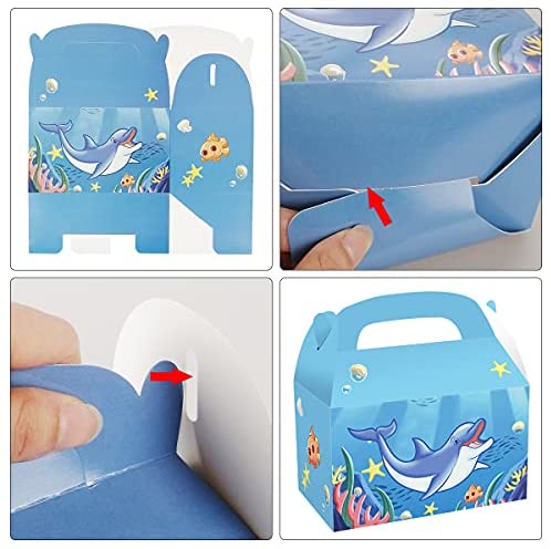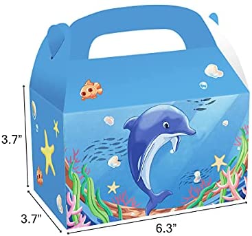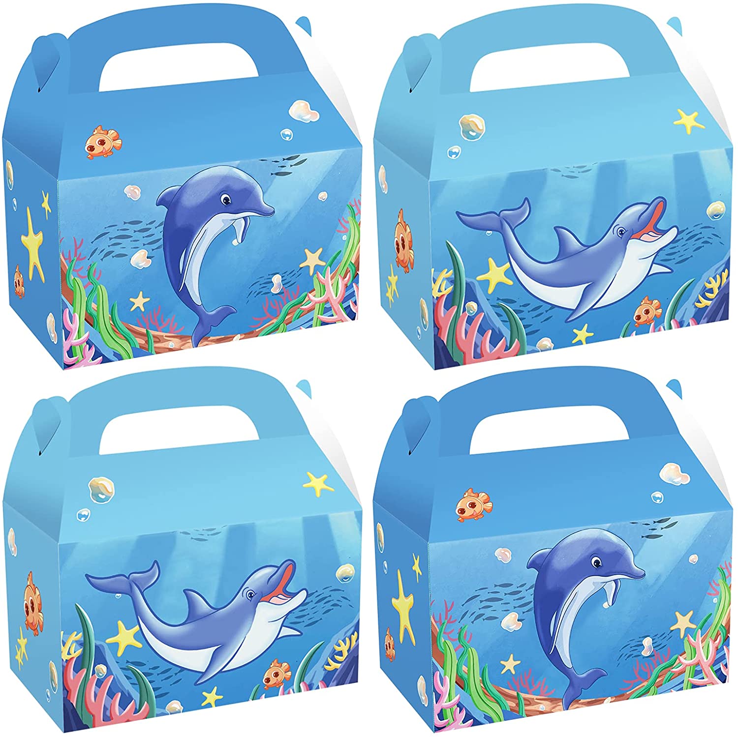 Cieovo 24 Pack Ocean Sea Life Dolphin Party Goodie Gift Boxes, Ocean Paper Gift Boxes Bags for Underwater World Creatures Dolphin Theme Kids Birthday Wedding Baby Shower Party Supplies Decoration