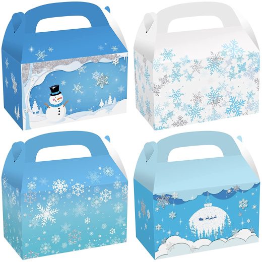 Cieovo 24 Pack Snowflake Party Cardboard Treat Box Snowflake Frozen Party Favor Goody Bags Treat Boxes for Winter Wonderland Theme Birthday Baby Shower Christmas Party Supplies