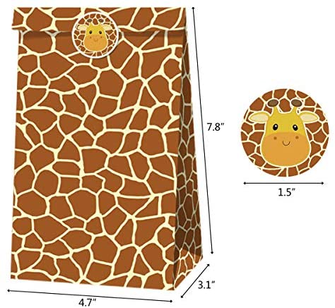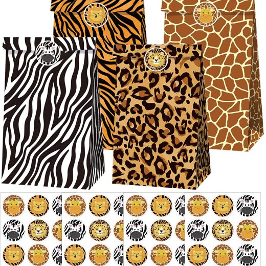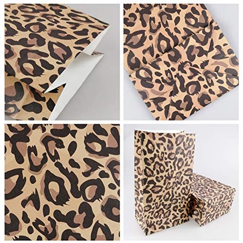 Cieovo 24 pcs Jungle Safari Animal Leopard Print Party Favor Bags Kraft Paper Gift Bags, Goodie Candy Bags Kraft Treat Paper Bags with Stickers for Zoo Animal Print Jungle Safari Themed Party Supplies Decoration
