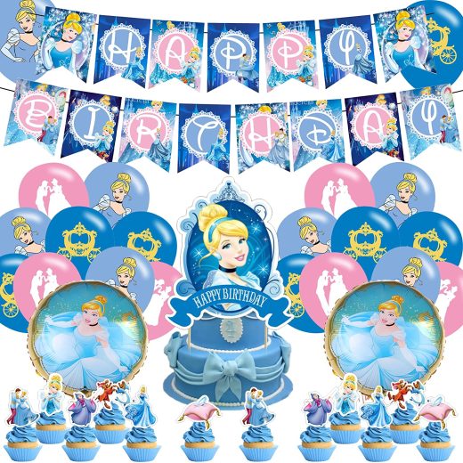 Cinderella Party Decorations,Birthday Party Supplies For Princess Cinderella Party Supplies Includes Banner – Cake Topper – 12 Cupcake Toppers – 18 Balloons – 2 Cinderella Foil Ballons