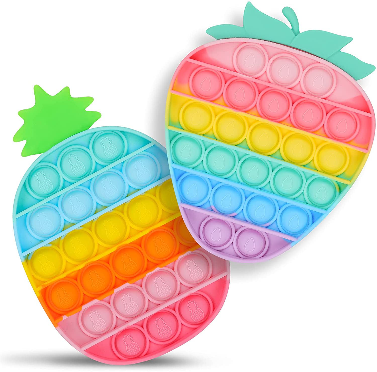 CJZYJLCRK 2PCS Push Pop Pop Bubble Sensory Fidget Toy, One Louder Side,Sensory Fidget Toy, Last One Lost Stress Reliever Autism Toy Anti-Anxiety Toys Rainbow (Rainbow Pineapple, Rainbow Strawberry)