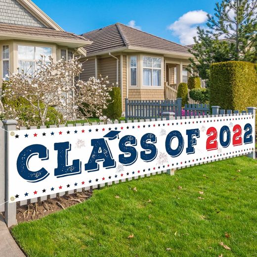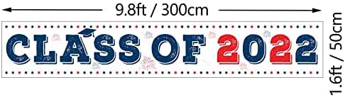 Class Of 2022 Banner Yard Sign – Preschool Elementary High school College Master Graduation 2022 Party Decorations Supplies – 9.8 x 1.6ft Blue Red White