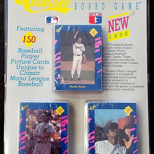 1990 Classic Baseball 150 card Board Game Factory Set. A great opportunity to acquire the complete 150 card 1990 Classic Major League Baseball game – still factory sealed and includes all pieces. Some of the cards included are Nolan Ryan, Bo Jackson, Don Mattingly, Tony Gwynn, Ozzie Smith, Ken Griffey, Jr., Deion Sanders, Cal Ripken Jr., Wade Boggs, Ryne Sandberg, Kirby Puckett,… and these are just from the first 50 cards!