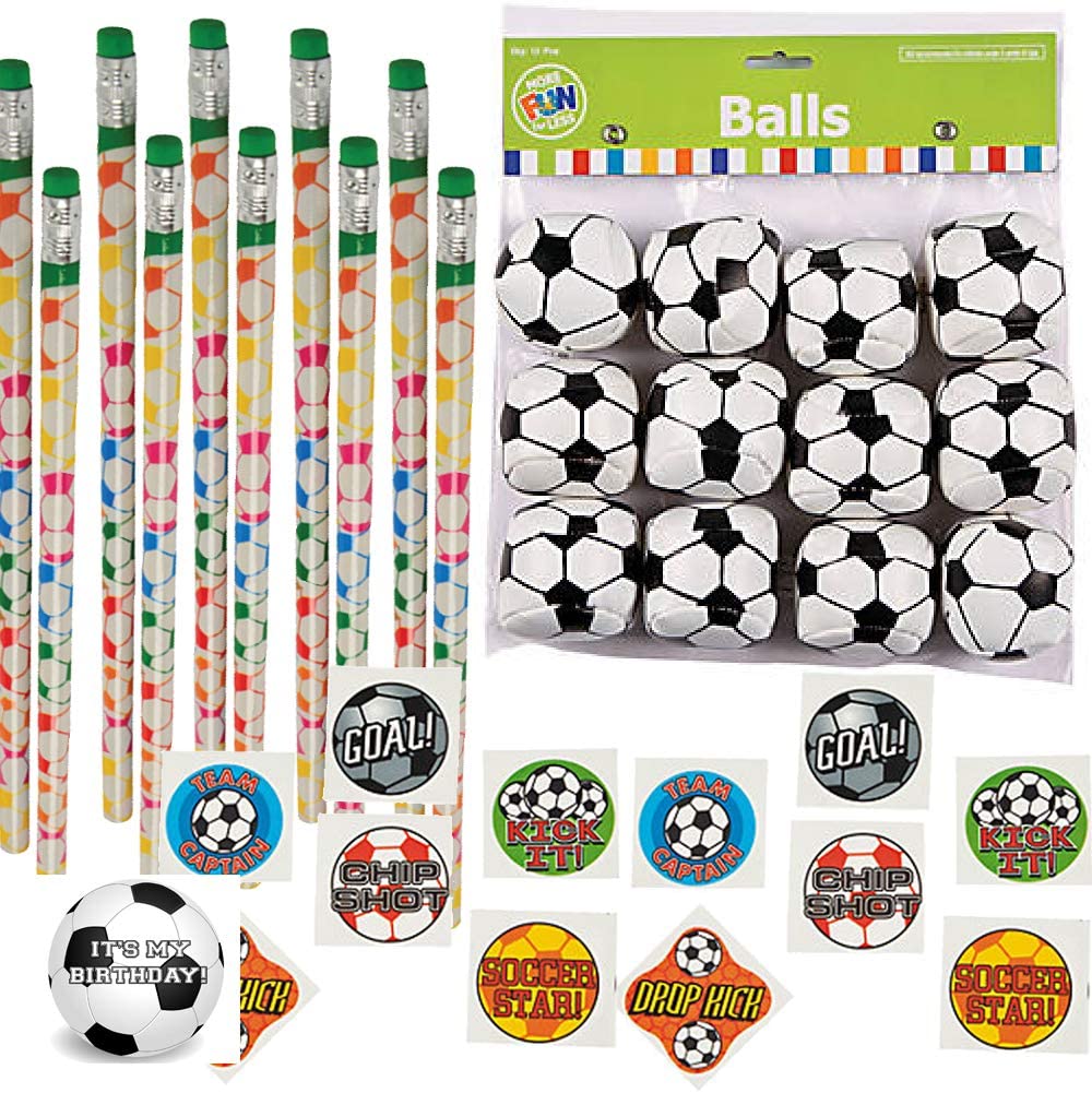 Clear Canyons Soccer Party Favors – 12 Soccer Pencils, 12 Mini Soccer Balls, 36 Soccer Tattoos