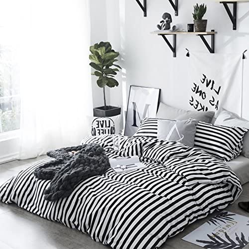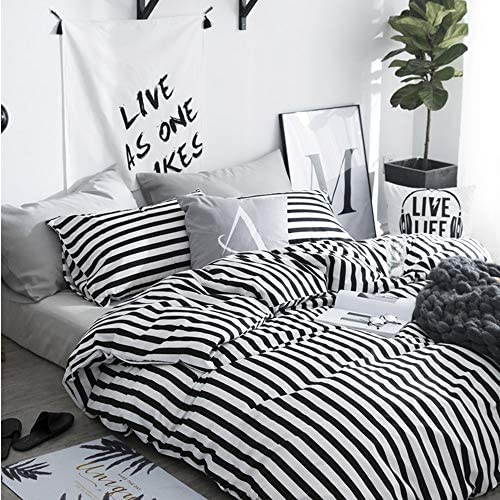 Material: 100% High Quality Premium Microfiber, Breathable, Lightweight and Super Soft, Hotel Quality; 3Pcs Queen Comforter Sets : 1 striped comforter (90 x 90) + 2 Standard pillowcases (20 x 26). Pls Note : Our Matching Duvet Cover Sets: B07C37SHZN , If you need it, pls seach this ASIN. Design:Modern Black and White Stripes Comforter Queen for Boys Girls Ticking Style Men Women Bedding Comforter Sets 100% Cotton. Give you a simple and warm room, and our black and white comforter sets with two pillowcases is envelope closure. Good Choice as a Birthday Gift or Special Holiday Gift; Thanksgiving Gift to your loved Kids, Boys, Girls, Teen, Good Friends and Family. Good Choice:The white black striped bedding comforter sets is good choice as a Birthday Gift or Special Holiday Gift, Thanksgiving Gift to your loved Kids, Boys, Girls, Teen, Men, Women, Good Friends and Family. Wash Instructions: Pls Machine wash cold, separately with gentle cycle. Tumble dry with gentle cycle and no heat. Turn it inside out to wash, because it’s vacuum packaging, it’ll wrinkle, so shake it out before throwing it in the dryer Best Service: If you have any questions, please feel free to contact us, our customer service staff will reply you within 24 hours. We offer a lifetime after-sales service. Thank you so much:)