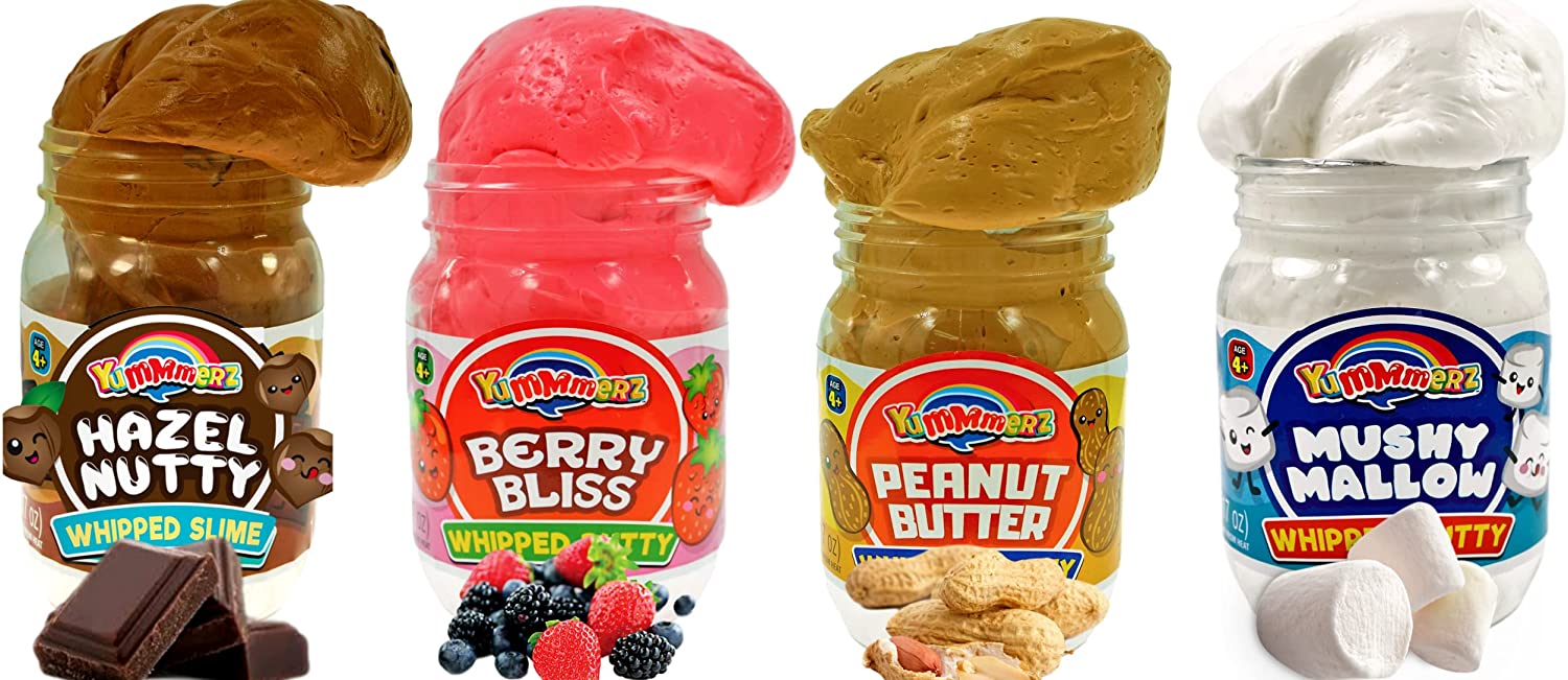 1 Unit Assorted Random Selected (Between 4 Styles) of Fluffy Slime Scented Putty. This are very realistic looking and Delicious Smelling Whipped Putty. Hazelnut (Slime), Berry Bliss, Peanut Butter and Mushi Mallow. Plus 1 Collectable Bouncy Ball by JA-RU. If you think youve found the best putty Keep thinking. Super Scented! This are Delicious smelling scented of Hazelnut Chocolate Slime, Strawberry, Marshmallow and Peanut Butter. With Soft Fluff Texture. Easy Storage, comes in a plastic jar container. Cannot be eaten, not for very little kids. Great Pretend Food for Girls Kitchen Toy Accessory, Make Great Pretend Food that looks and feel Real!. No sticky Residue. squeeze, fold, roll, pull the slime, slime is great tool for stress relief, good Ideal for work, office, school projects. Could be used for hypertonia spasticity handsplint or as a Montessory toy Stress Relief and Release, Calming, Relaxing, Focus, Concentration, Autism, Anxiety, Sensory toys, Church, Memorial Day Sale, Independence, Classroom Box, Easter Basket, Planner Party Supplies, Treasure Chest Box, For Children Kids boys or Girls & Adults. USA JA-RU. ASTM Tested. Top Quality & Safety. Party Favor, Giveaways, Prizes, Goodies, Stocking Stuffers, Rewards, Incentives, Pinata Filler, Birthday Bag, Reward, Carnival Christmas Halloween, Summer Camp, Add, ADHD. Cool Stuff Toys in Bulk.