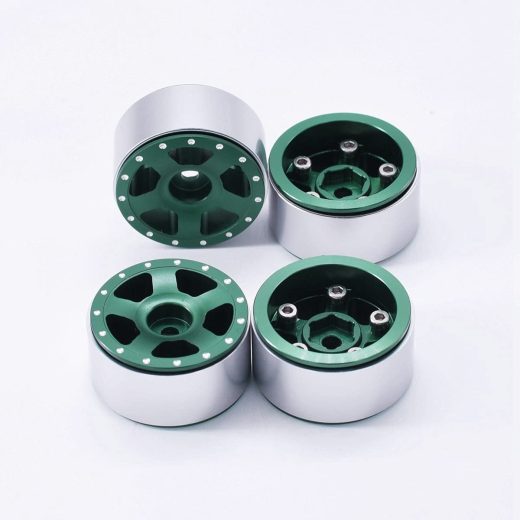 Features: CNC machined Billet aluminum Removable center hub Internal beadlock system Fits standard 7mm hex Fits 1.0 Size Tires Specs: Wheel Size: 1.0 OD: 1.10in / 28mm Width: 0.57in / 14.5mm Each Weight: 13g Includes: 4x CNC aluminum alloy starfish 1.0 Stock Beadlock Wheels (Chrome)
