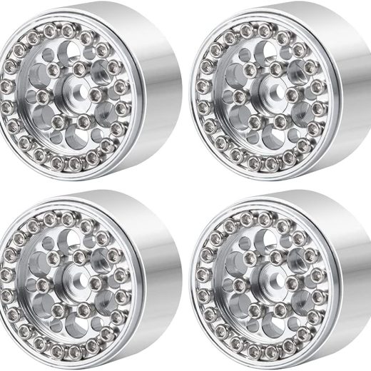 CNszlan 4Pcs CNC Aluminum Beadlock Wheel Rims Set for 124 Axial SCX24 90081 RC Crawler (Silver)