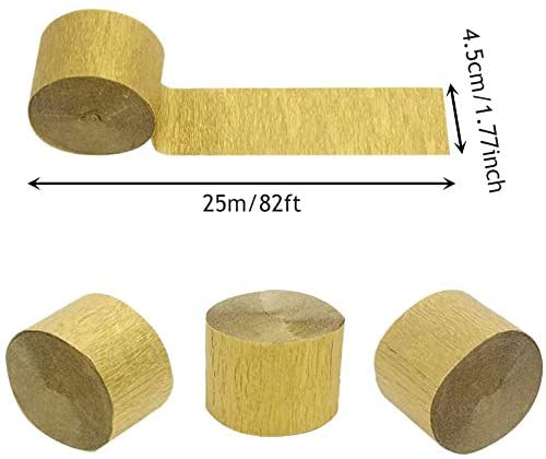 PACKAGE CONTAINS – 6 rolls golden crepe paper streamers, the color is bright and vibrant. SIZE OF EACH ROLL – 4.5cm/1.77inch wide, 25m/82ft long. H…