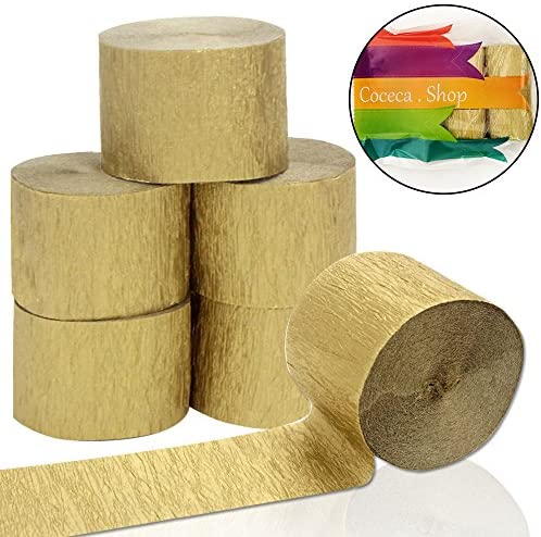 Coceca 6 Rolls 492ft Gold Crepe Paper Streamers for Birthday Party Wedding Festival Party Decorations