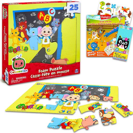 CoComelon Floor Puzzle for Toddlers – CoComelon 25 Piece Foam Puzzle Bundle with Highlights Grab n Go Activity Book and More (CoComelon Games)