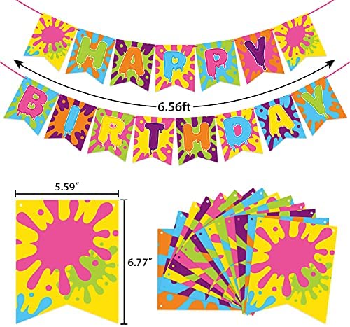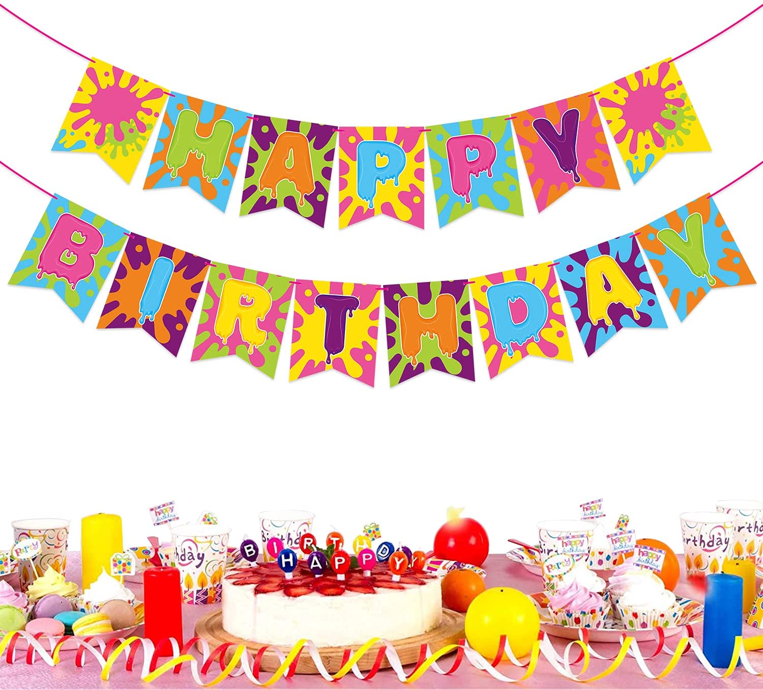 Colorful Slime Happy Birthday Banner Pennant Slime Party Decoration for Birthday Baby Shower Graffiti Home Events Painting Art Party Supplies