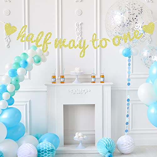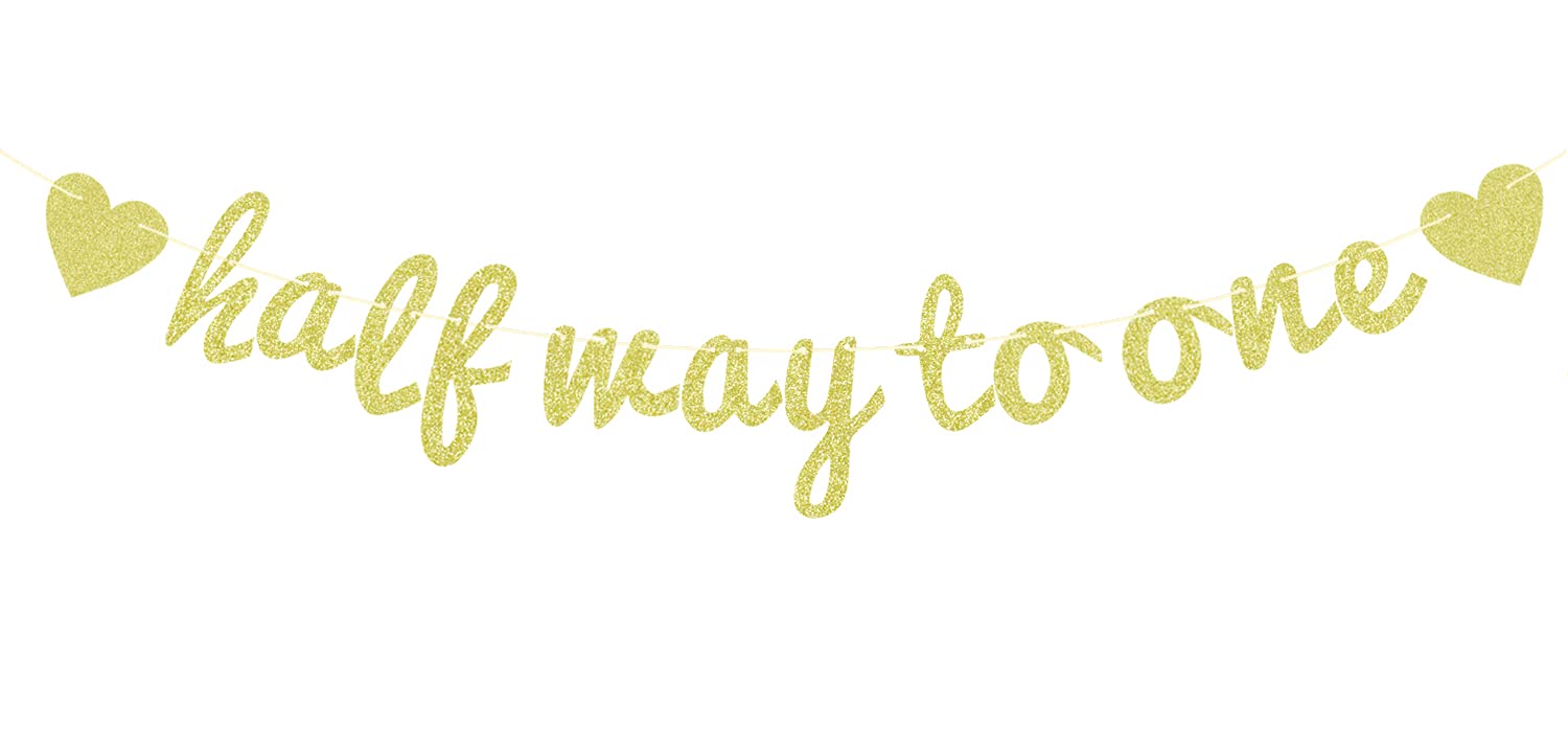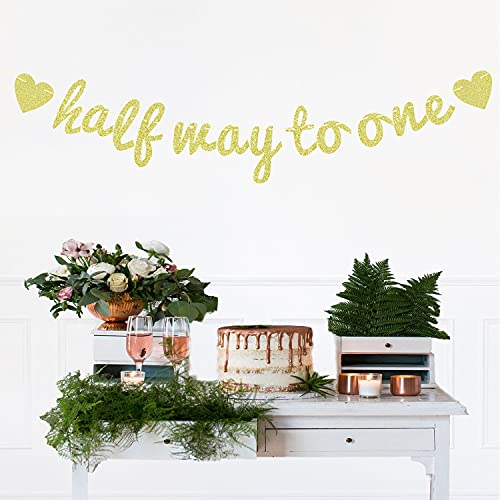 Colorfulparty Gold Glitter Half Way to One Banner – 6 Months Birthday Decorations – Half Year Old, Happy 12 Birthday Party Decoration Supplies
