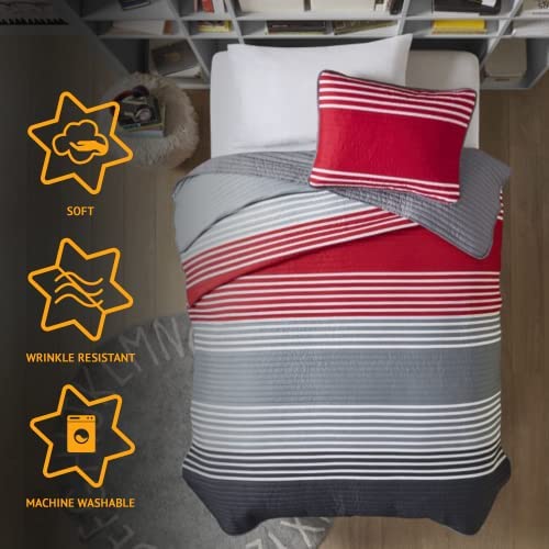 Comfort Spaces Quilt Set Trendy Casual Fun, Vibrant Color Design, Hypoallergenic All Season, Lightweight Coverlet Bedspread Cozy Kids Bedding & Sham Twin/Twin XL Colin Red/Grey 2 Piece