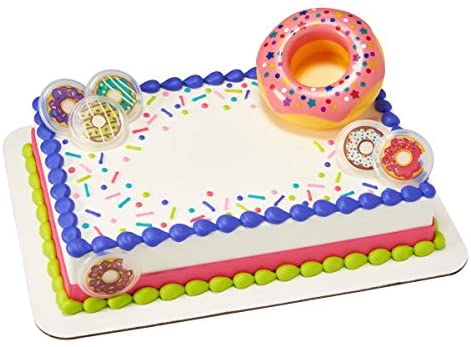 Donut lovers can now enjoy their indulgence with cake! This Confetti Donut DecoSet help you create a donut masterpiece with these food-safe plastic donuts and layons. 7-Piece set. Dimensions: BIG DONUT: 4.1 x 4.1 x 1.55 inches. SMALL DONUTS(: 1.85 x 1.85 x 0.2 inches
