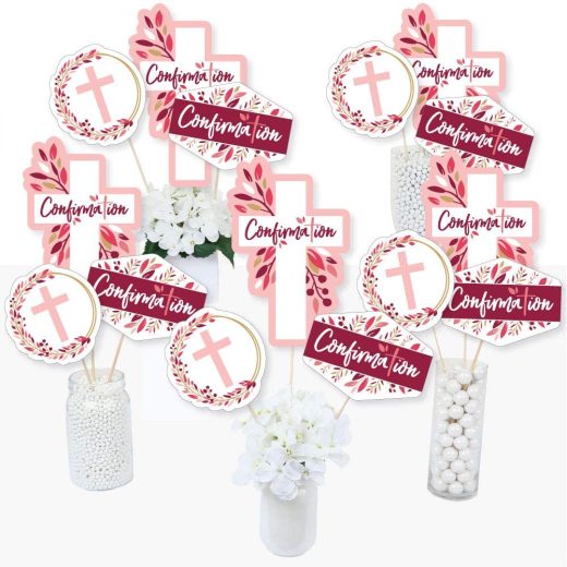 Confirmation Pink Elegant Cross Centerpiece Sticks INCLUDES 15 girl table toppers in three different shapes, 15 wooden dowel sticks and stickers for easy assembly. Dedication party table decorations are perfect for a girl religious party. Confirmation Pink Elegant Cross Centerpiece Sticks SIZE five cross table toppers, 7” wide x 10.75” tall; five Confirmation table toppers, 7” wide x 5” tall; and five circle table toppers, 5.75” wide x 6” tall. The unique design and variety of pieces makes this table decoration kit an impressive addition to any cross theme party. EASY PARTY DECOR: Confirmation Pink Elegant Cross table decorations can be used as centerpieces when attached to the included dowels and inserted into vases or floral arrangements. They easily accent your girl religious party candy buffet when you add them to apothecary jars. Table toppers are also a great addition to any photo booth. The large shaped cut outs will make your party pics instantly shareable. PREMIUM PARTY SUPPLIES: Confirmation Pink Elegant Cross table toppers are professionally printed on heavy-duty cardstock paper with a photo-like shine. They are individually inspected and carefully packaged by hand with wooden dowels and stickers for easy assembly. Get creative with your DIY party ideas! MADE IN THE USA: Confirmation Pink Elegant Cross – Religious Party Centerpiece Sticks are designed and manufactured at our Wisconsin facility using materials that are Made in America.