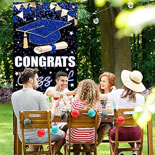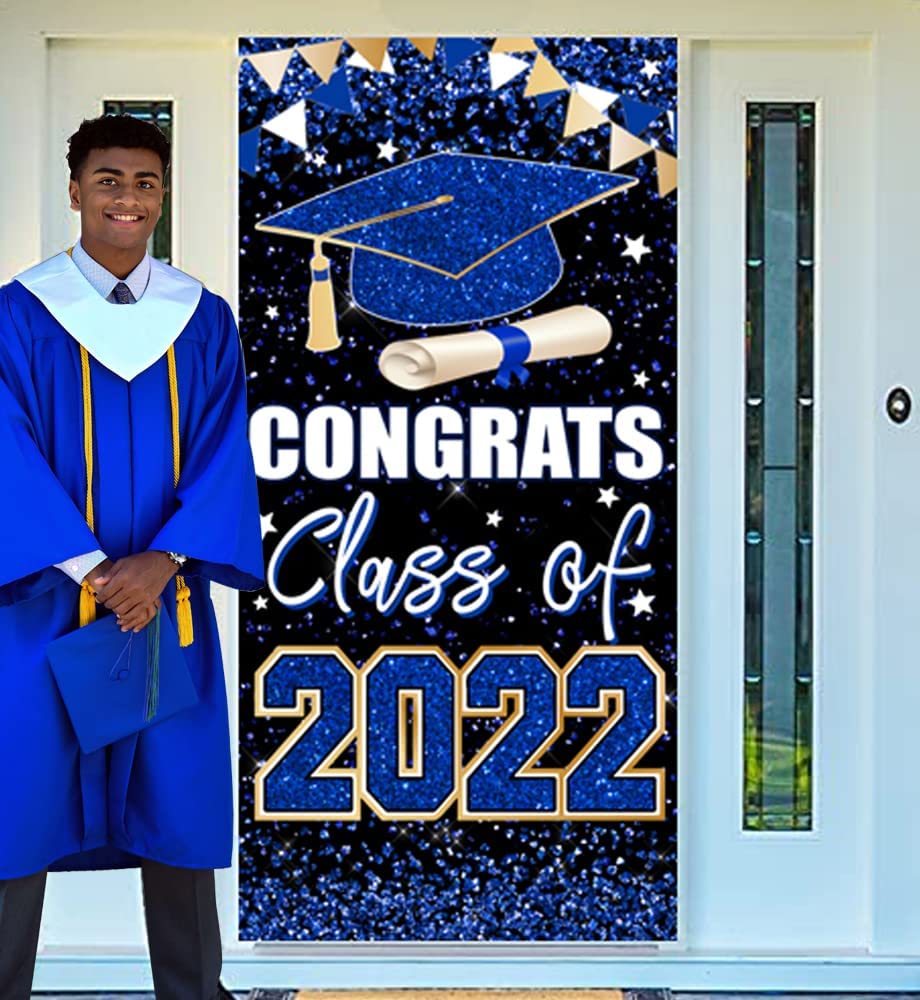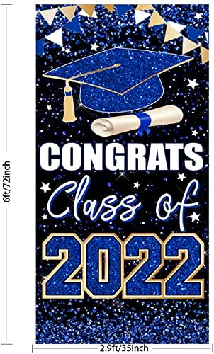 Congrats Class of 2022 Backdrop, Graduation Backdrop 2022 Graduation Party Decorations Graduation 2022 Door Cover Banner for Indoor Outdoor (Blue)