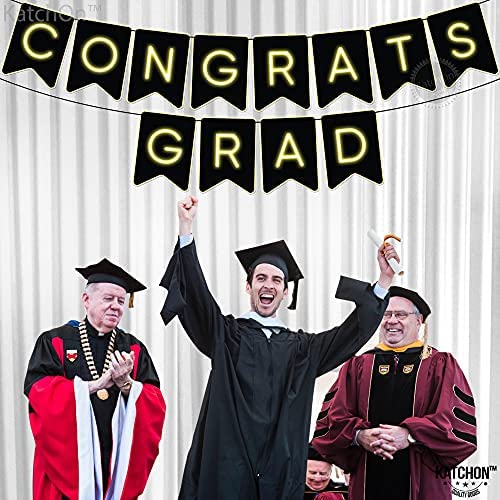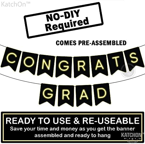 Congrats Grad Banner for Class of 2022 Decorations – No DIY, 10 Feet | Neon Glow Effect Black and Yellow Graduation Banner 2022 | Black and Gold Graduation Decorations 2022 | Congratulations Banner