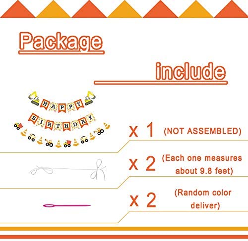 Construction Birthday Banner | Bday Sign Bunting Garland | Truck Excavator Party Decoration for Boy