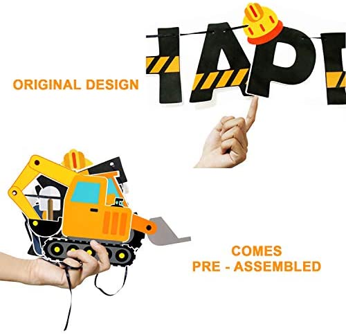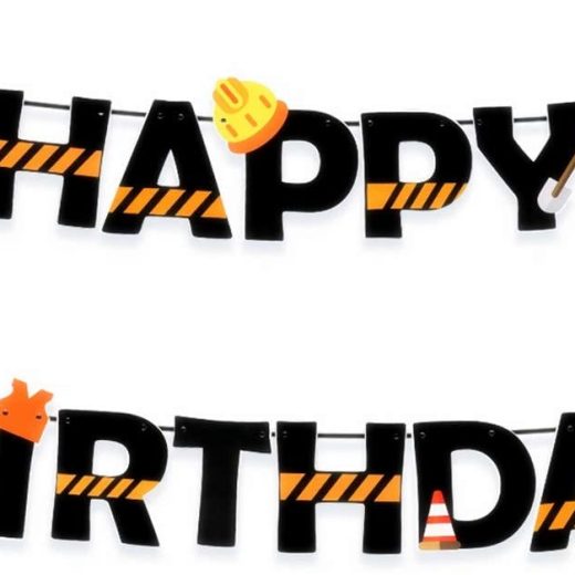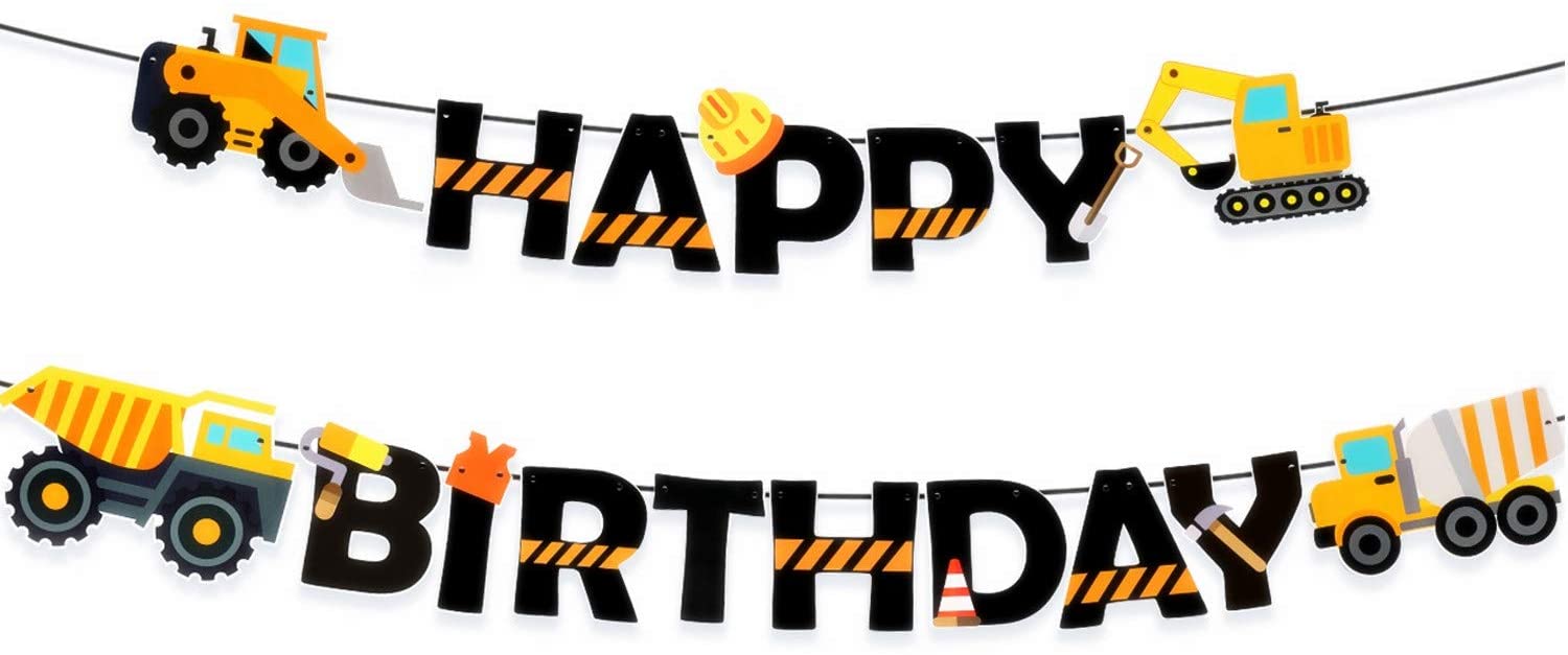 Happy birthday letter banner with trucks on each end. No DIY Required. All items are assembled and ready to hang. The construction birthday banner …