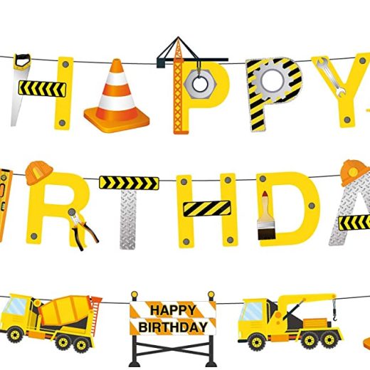 Construction happy birthday ribbon banner. perfect to decorated your Dump Truck Party Decorations Pre-Assembled Builder Bulldozer Excavator Tank Tr…