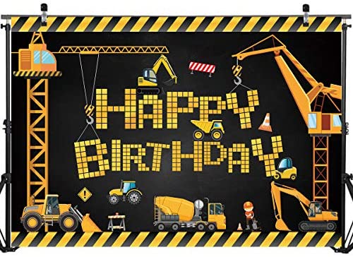 Construction Party Decorations Dump Truck Happy Birthday Backdrop Banner for Boys Kids | Dump Truck Backdrop Background Banner Wall Decorations Birthday Party Indoor Outdoor Supplies 71 x 49 inch