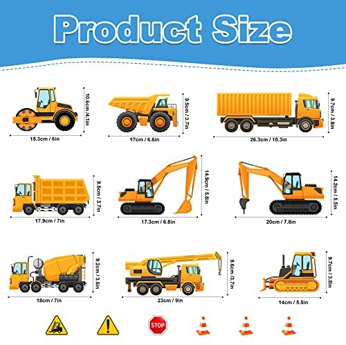 ?Package Contains?:The construction vehicles decals nicely designed with transport vehicles, excavators, road rollers, trucks,crane,safety cones,wa…