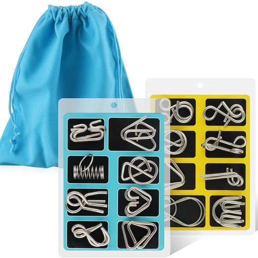 Includes 16 different style metal wire puzzles,made by high quality mental and you can keep the shape from bending and breaking. The IQ toy doesnt …