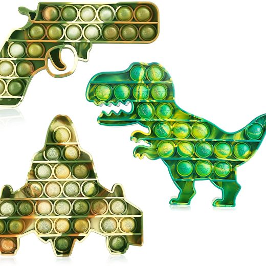Cool Tie-dye Pop Bubbles Push Popping Toy, Push Bubble Fidget Sensory Toy Cheap Popper Fidget Pack Stress Relief Tool Office School Game Gift for Kids (3 Pack -Airplane/Gun/Dinosaur)