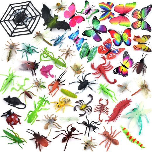 Coopay 51 Pieces Plastic Bugs, Fake Bugs, Fake Spiders, Cockroaches, Scorpions, Crickets, Butterflies and Worms for Education and Christmas Party Favors