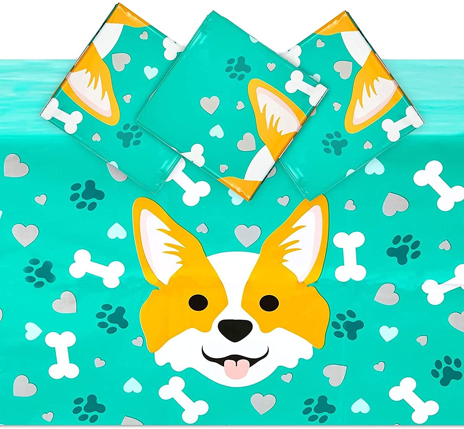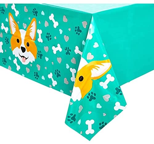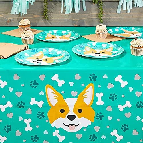 Corgi Tablecloth for Dog Birthday Party (Green, 54 x 108 Inches, 3 Pack)