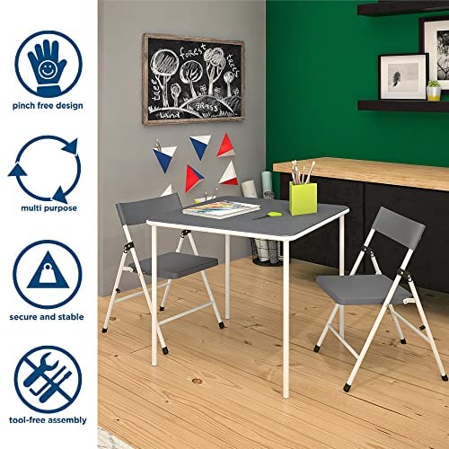 CoscoProducts Kids 3-Piece Activity Set, Table and 2 Folding Chairs, Pinch-Free Design, Easy to Clean, Multi-Purpose, Easy to Assemble, Portable, Great for Snacking, Homework, & Games, Grey