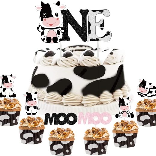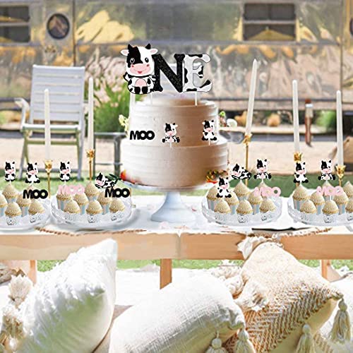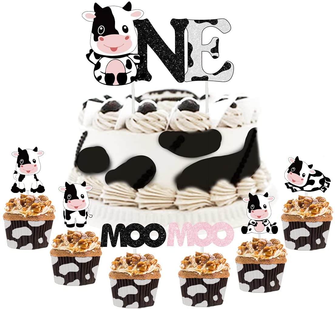 Cow 1st Birthday Cake Topper, Farm Animal Cupcake Toppers for Boys Girls First Birthday Party Decorations, Barnyard Theme Party Supplies 25 Pcs