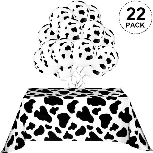 Cow Tablecloth for Party,Include 2 Pieces Table Covers, 20 Pieces Cow Balloons and 10m White Ribbon Party Picnic Supplies (Cow Print Cow Pattern)