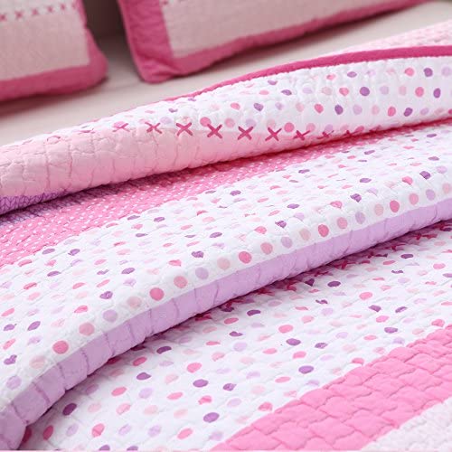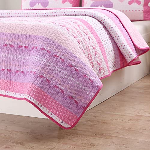 Cozy Line Home Fashions Cute Butterfly Stripe Hearts 100% Cotton Soft Bedding Quilt Set-Bedspreads-for Girl/Toddler (Pink Butterfly, Queen – 3 Piece)