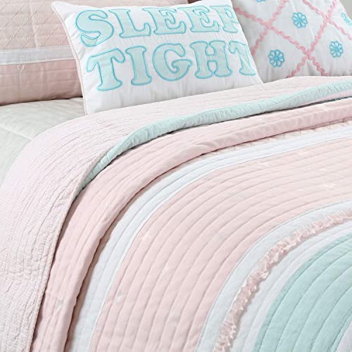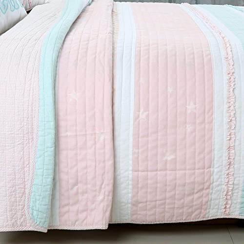 Cozy Line Home Fashions Light Pink Blue Ruffles Girl 100% Cotton Reversible Quilt Bedding Set, Coverlet, Bedspread (Candy, Twin – 2 Piece: 1 Quilt + 1 Sham)