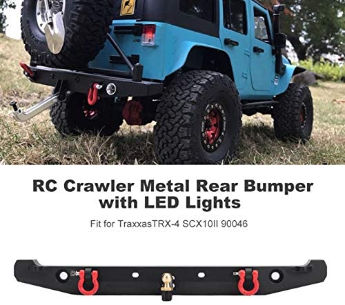 Crawler Rear Bumper, Metal RC Bumper, RC Rear Bumper with Lights and Tow Hook for Traxxas TRX4 Axial SCX10II 90046 Remote Control Car