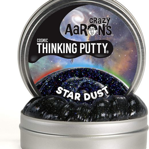 Collection: COSMIC | Color: Black with Multi-Colored Glitter | Glow: Dynamic Speckled Red/Blue/Green | Includes Glow Charger Made in the USA from nontoxic silicone and never dries out Stretch it, bounce it, pop it, tear it, and sculpt it! Fun for ages 8+ Includes 1/5 lb. (3.2 oz) of Genuine Crazy Aaron’s Thinking Putty Thinking Putty is manufactured with the help of exceptional individuals challenged with disabilities