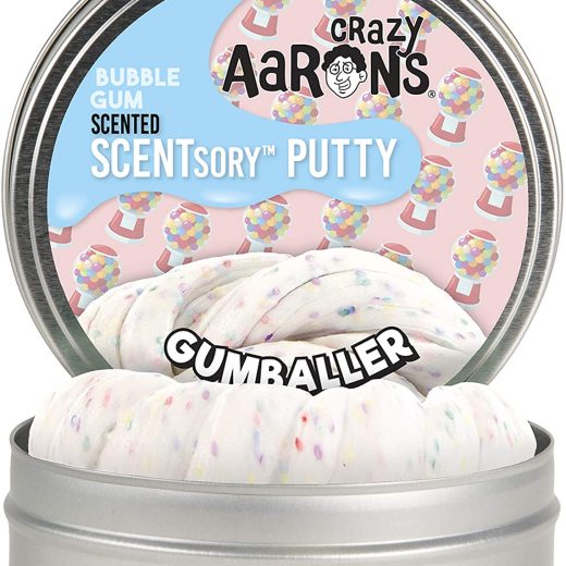 NUTTY FOR PUTTY: Snap, twist, sculpt, stretch, squish and bounce all day long! Manipulating the putty ignites creativity while simultaneously helping with concentration, anxiety relief and stress. Thinking Putty is an ideal gift for both kids and adults! GUMBALL GREATNESS: Breathe in the sweet aroma of bubble gum as you play with our Gumballer putty! As you work the soft white with rainbow sparkle putty between your fingers, the nostalgic scent will begin to expand, melting away all your tension! INDESTRUCTIBLE: Combine arts & crafts, STEM, and fidget into one cool science experience! The slightly gooey putty never dries out providing an endless ability to squeeze, pull and knead. Spark imagination for homeschool projects and make learning fun! SOMETHING FOR EVERYONE: Keep your hands busy with our sensory toy putty by using fine motor skills and hand muscle coordination to help alleviate stress and anxiety. For tactile fidgeting fun, open up a pack-n-go tin to discover a world of possibilities! INNOVATIVE CULTURE: Crazy Aaron’s Thinking Putty is made with high-quality, nontoxic ingredients free of major allergens. Made in the USA with help of exceptional individuals challenged with disabilities, Crazy Aaron’s is committed to helping all people!