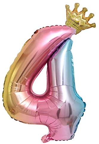CRAZY GOTEND 32 Inch Large Crown Number Balloon 4 Foil Balloons Birthday Party Decoration(Number4)